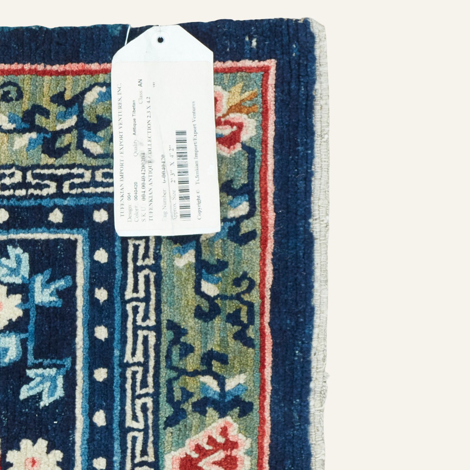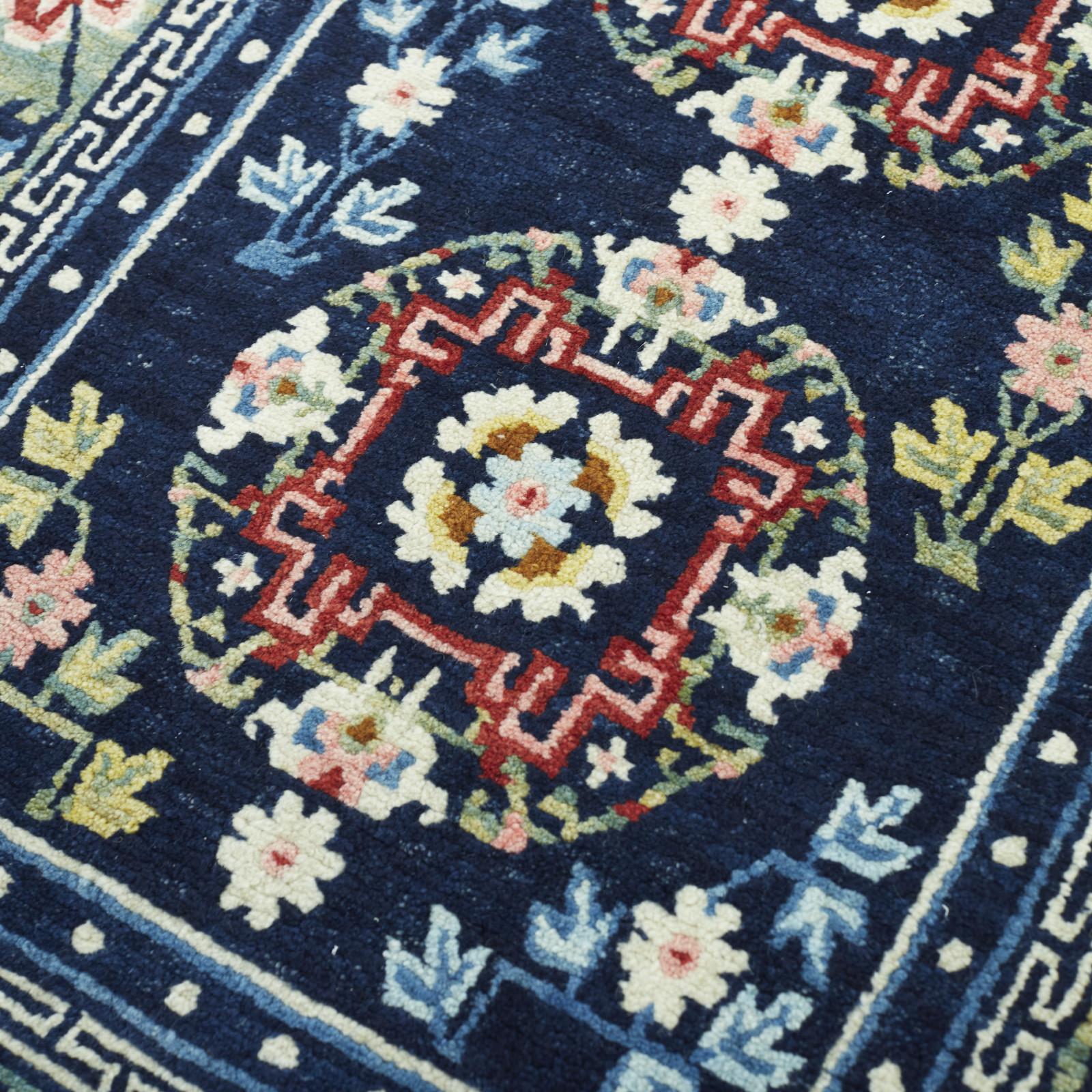 Home KHADEN (40420) Vintage Tibetan Rugs KHADEN (40420) $ 3,000.00 KHADEN (40420) quantity Add to cart Product Details Size 68X126cm Country of Origin: Tibet Design Style: Three Medallion, Flowers, Meander Border, Pearl Inner Border,